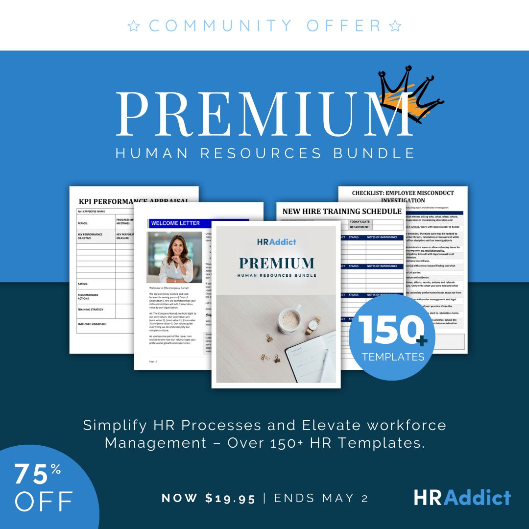 Transform your HR processes with HRAddict’s Premium HR Toolkit, featuring 150+ expertly crafted templates designed to reduce time and elevate workforce management.