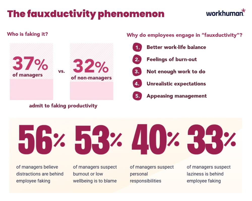 A survey by Workhuman revealed that 36﹪ of employees admitted to faking productivity, often due to factors like burnout, lack of engaging tasks, or rigid return-to-office mandates. Experts suggest that this behavior stems from outdated management practices that equate physical presence with productivity, leading employees to focus on appearing busy rather than delivering results.