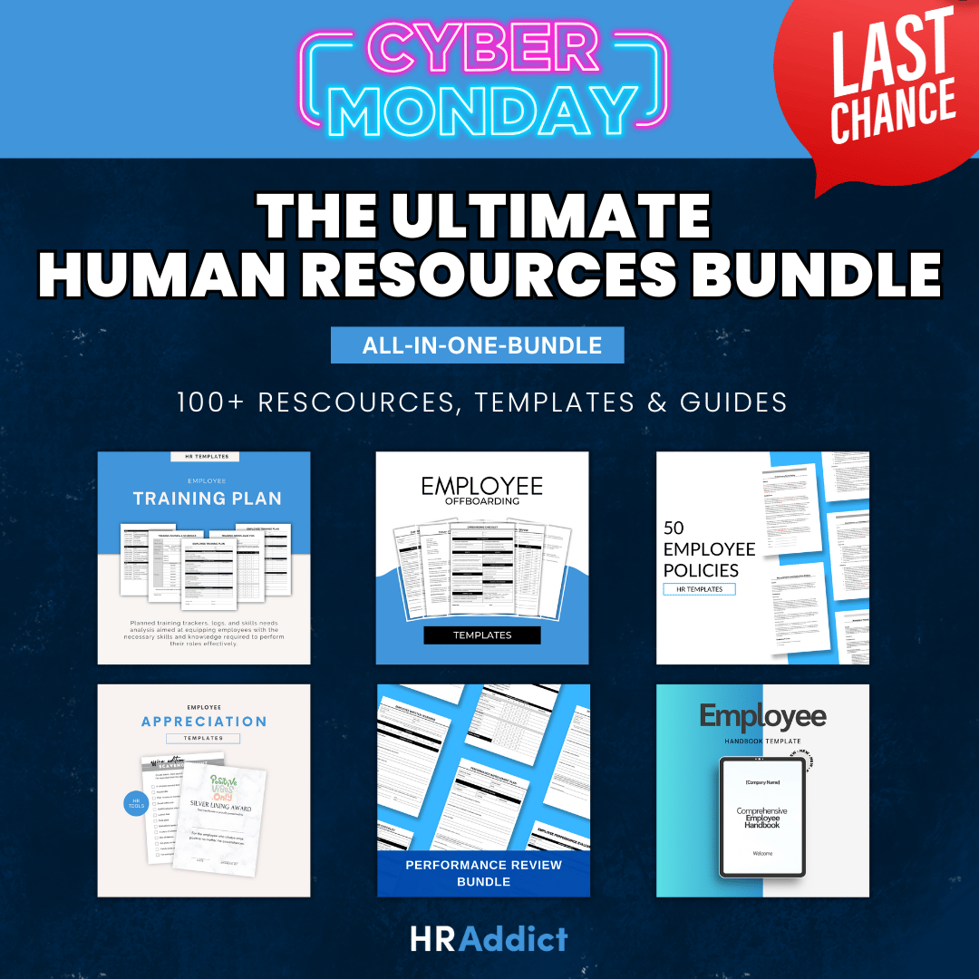 ⚡ Unlock the full potential of your HR department with our Ultimate HR Bundle available for next to nothing this Cyber Monday — ends tonight!