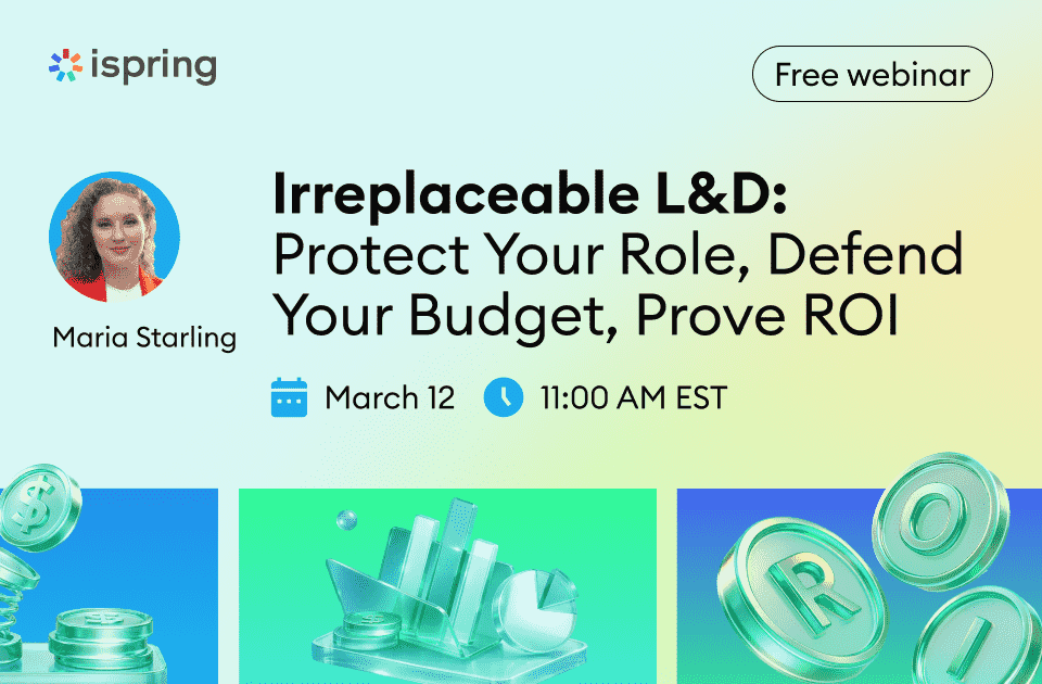 On March 12, join iSpring’s webinar to explore how to communicate learning ROI without bias, align training with performance outcomes, and defend your investments with credible business language.